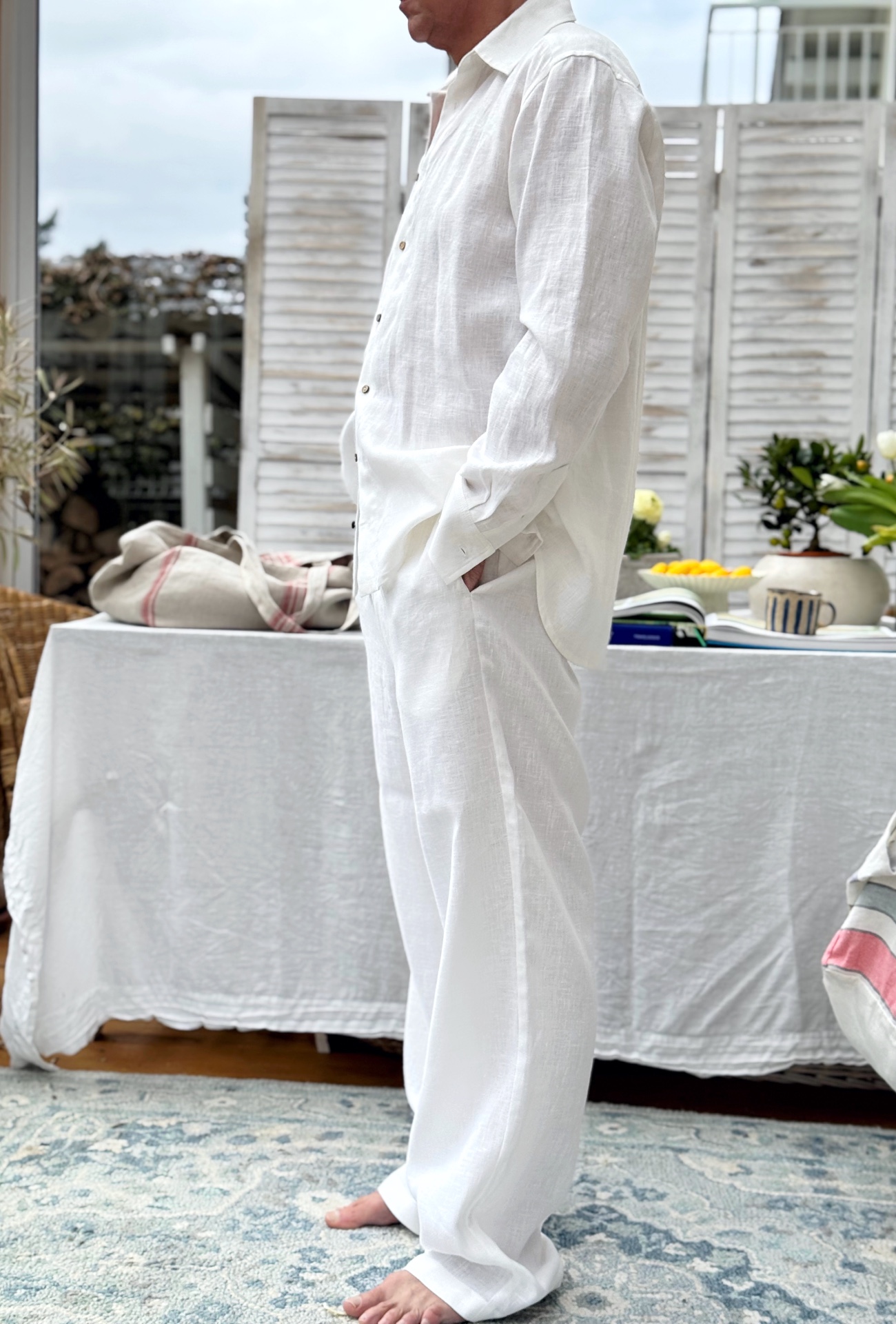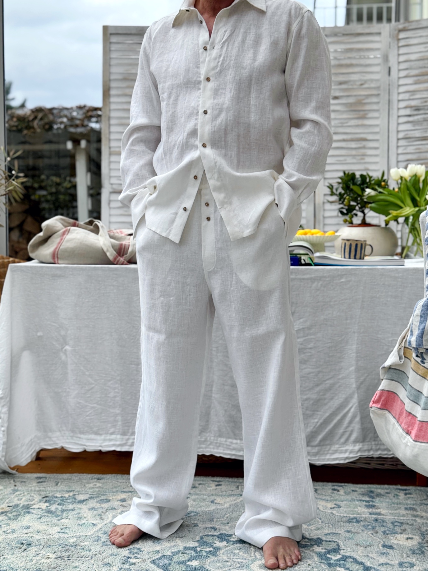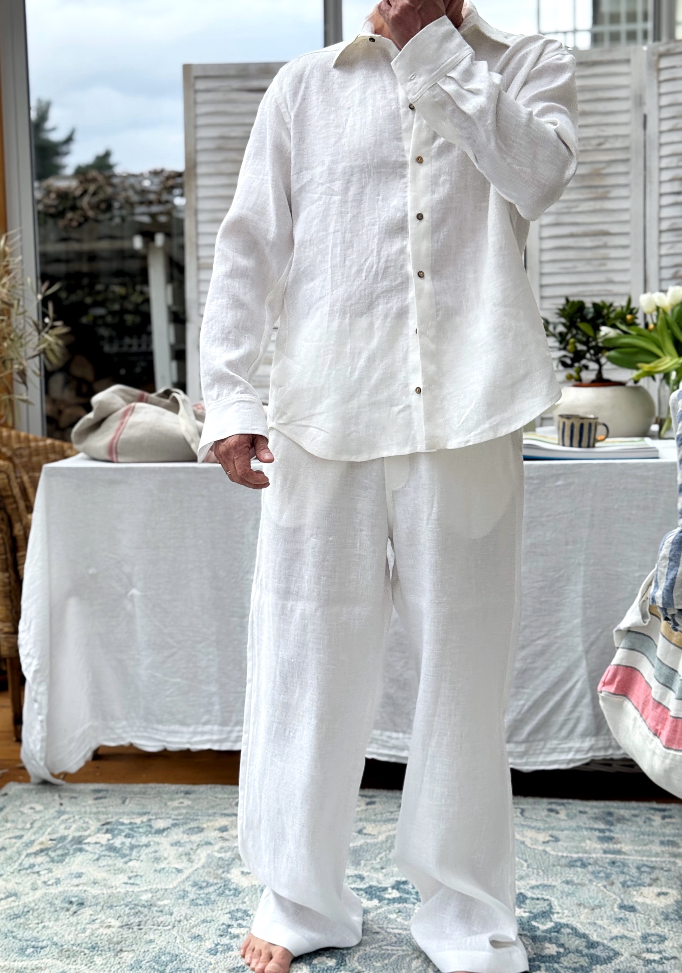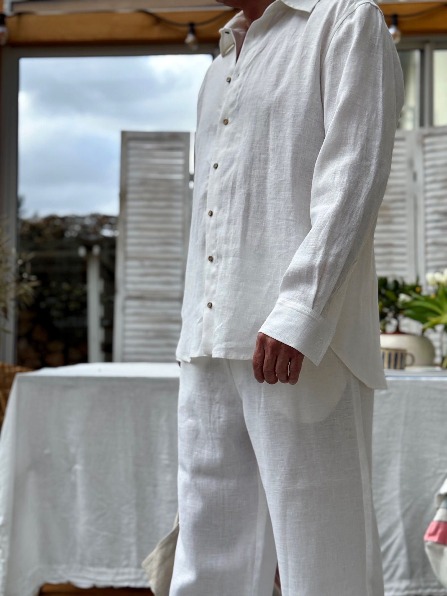 Procesy produkcji: Naszą odzież szyjemy w trójmiejskich pracowniach krawieckich. Len posiada certyfikat OEKO-TEX Standard 100, a cały proces produkcji odbywa się zgodnie z europejskimi wytycznymi REACH, co zapewnia ochronę środowiska i zdrowia konsumentów. Tkanina pochodzi od firmy zrzeszonej w European Flax and Hemp Alliance, co świadczy o jej wysokiej jakości i etycznych praktykach produkcyjnych.